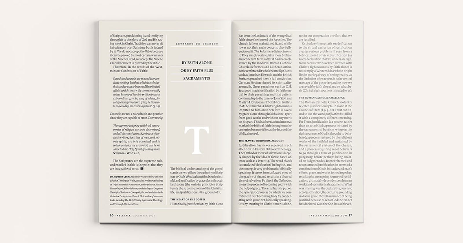 Request your free, three-month trial to Tabletalk magazine. You’ll receive the print issue monthly and gain immediate digital access to decades of archives. This trial is risk-free. No credit card required.