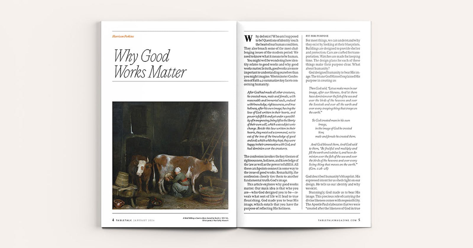 This article explores why good works matter. Our main idea is that who you are—who God designed you to be—reveals what sort of life will lead to true flourishing. God made you to bear His image, which entails that you have the purpose of reflecting His holiness.